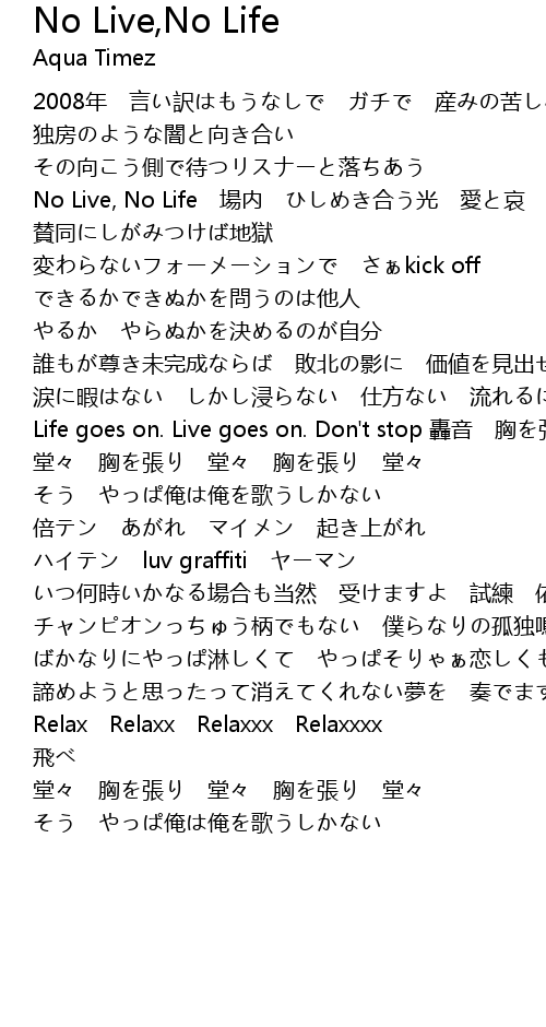 | No Live, No Life 場内 ひしめき合う光 愛と哀 響き合い | |