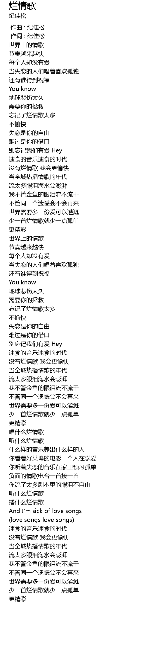 | [01:38.85] | wàng jì le làn qíng gē tài duō |