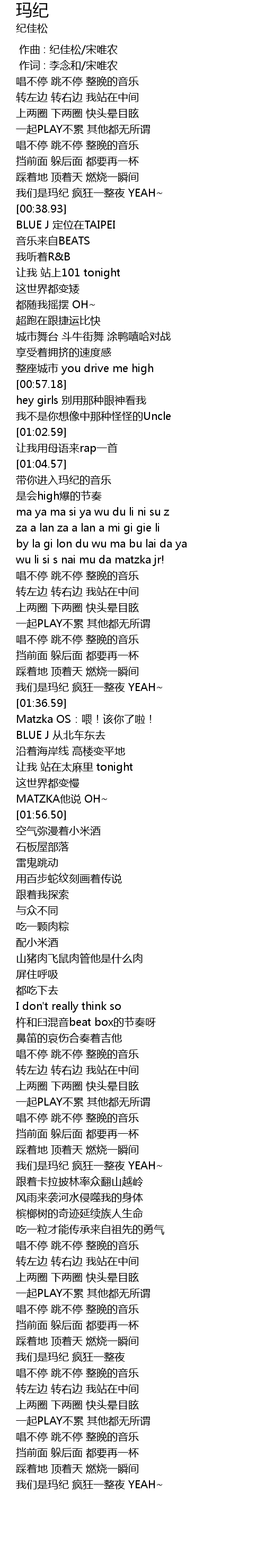 | [00:36.31] | 我们是玛纪 疯狂一整夜 YEAH~ |