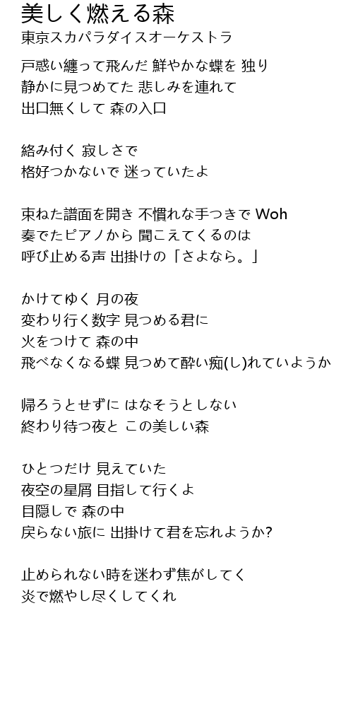 | 止められない時を迷わず焦がしてく 炎で燃やし尽くしてくれ |