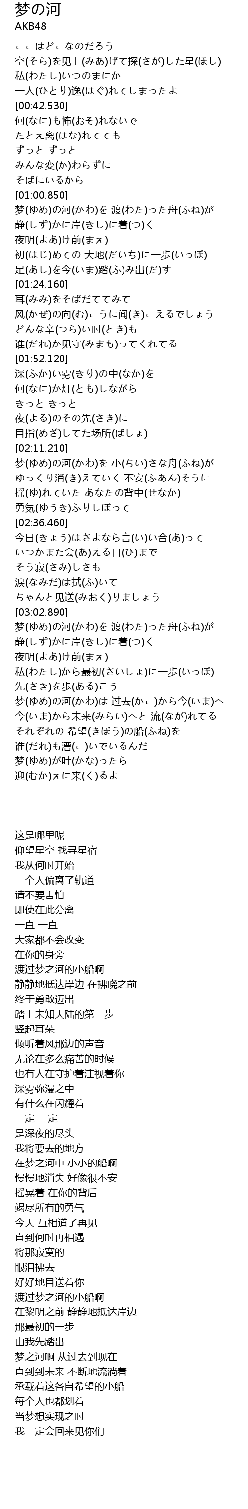 | [03:10.710] | 梦(ゆめ)の河(かわ)を 渡(わた)った舟(ふね)が |