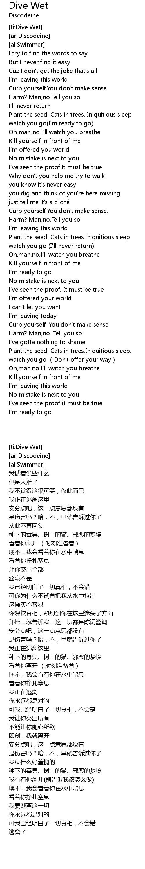 | [00:43.95] | Plant the seed. Cats in trees. Iniquitious sleep |