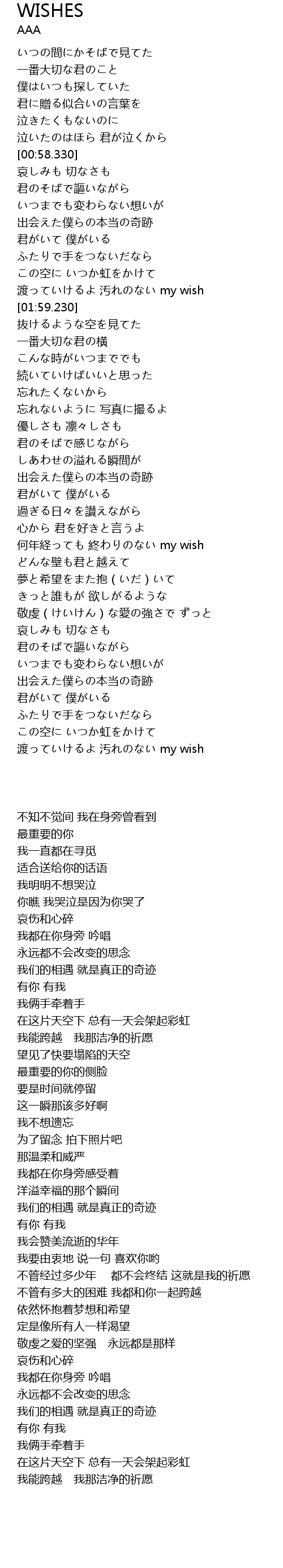 | [03:47.970] | 何年経っても 終わりのない my wish |