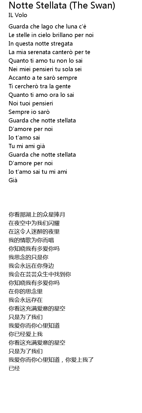 | Song | Notte Stellata (The Swan) |