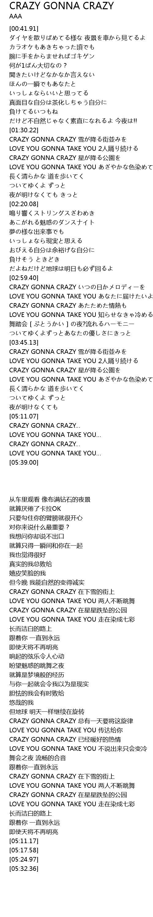 | [05:24.97] | CRAZY GONNA CRAZY |