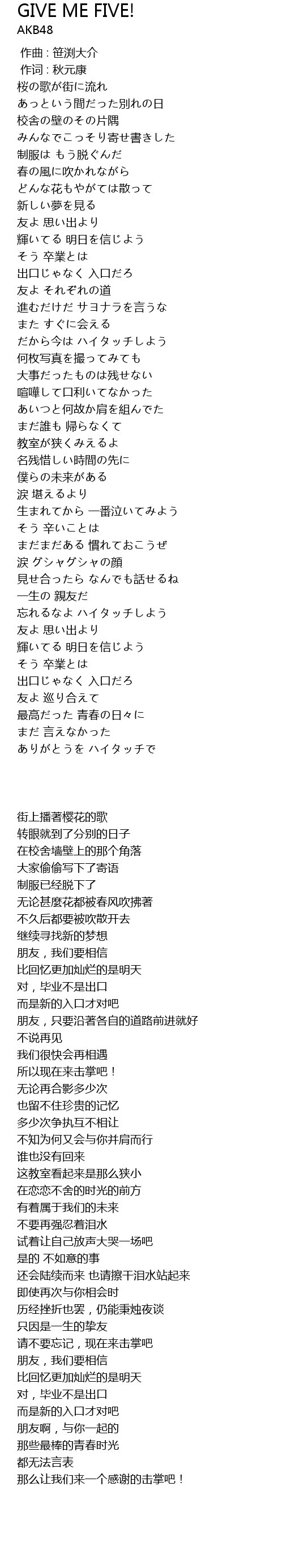 | [03:25.980] | 忘れるなよ ハイタッチしよう |