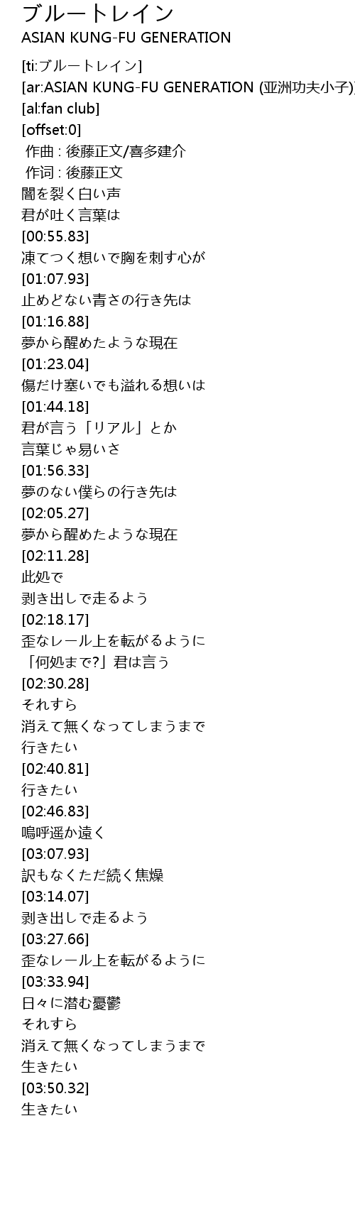 | [00:00.00] | 作曲 : 後藤正文/喜多建介 |