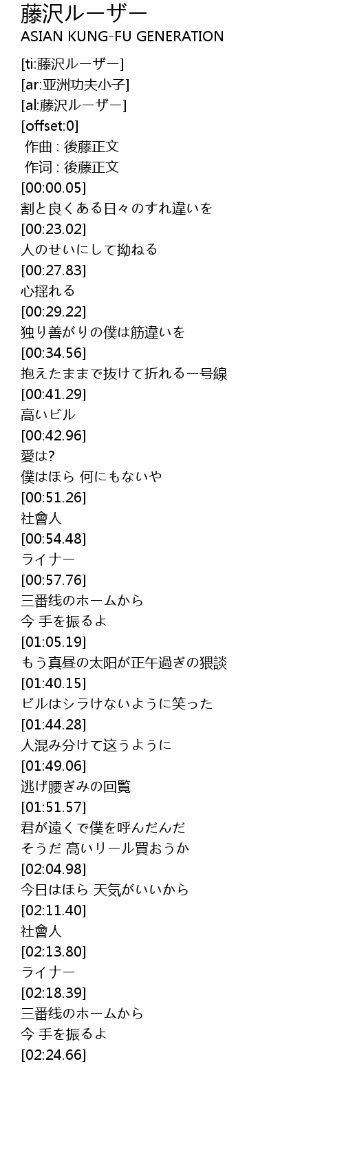 | [ti:藤沢ルーザー] | |
