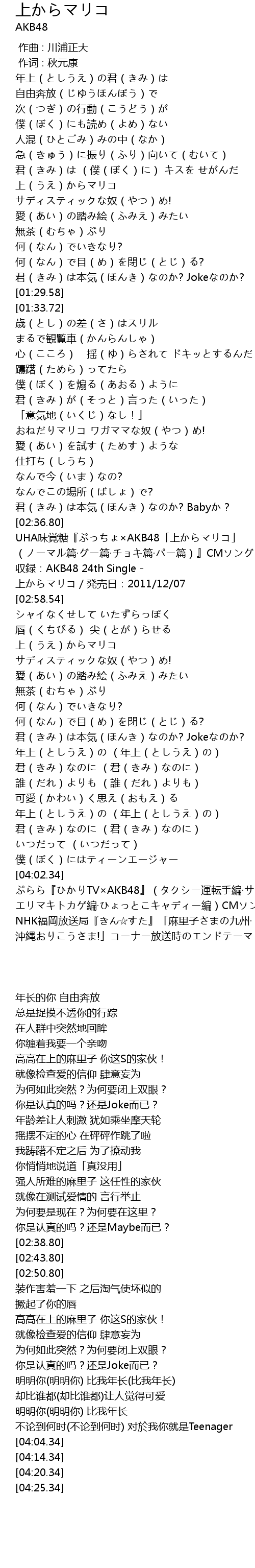 | [02:50.80] | 収録:AKB48 24th Single - 上からマリコ/発売日:2011/12/07 |