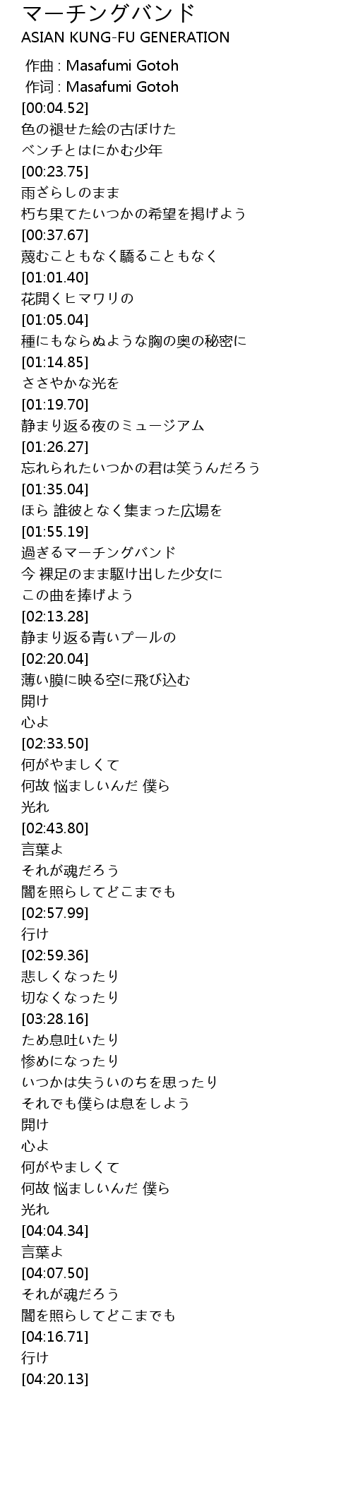 | [00:00.00] | zuo qu : Masafumi Gotoh |
