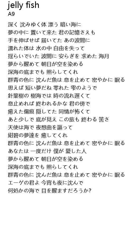 | 深く 沈みゆく体 漂う 暗い海に | |
