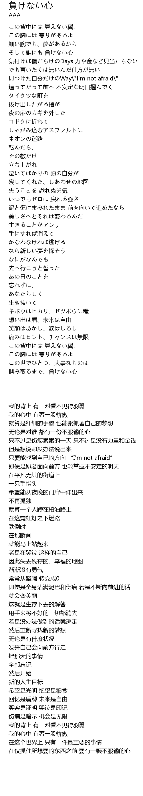 | [00:57.260] | 見つけた自分だけのWay\"I'm not afraid\" |