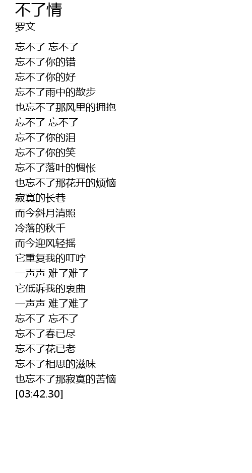 | [02:50.15] | wàng bù liǎo wàng bù liǎo |