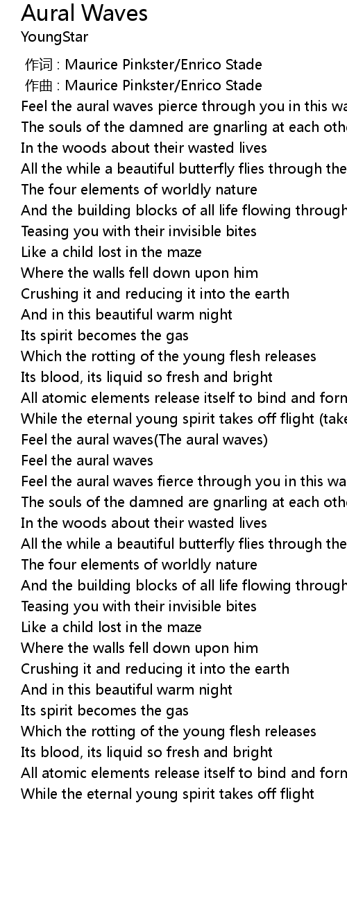 | [04:42.000] | Feel the aural waves(The aural waves) |