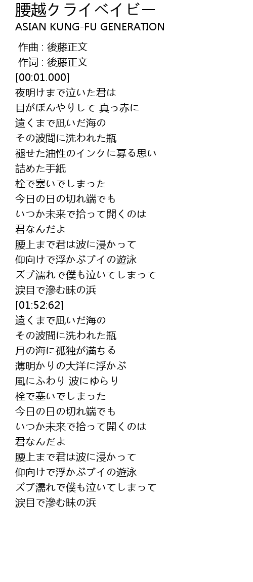 | [00:00.333] | 作词 : 後藤正文 |