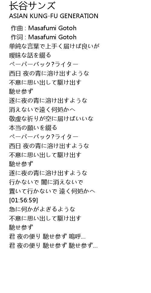 | [00:01.000] | zuo ci : Masafumi Gotoh |