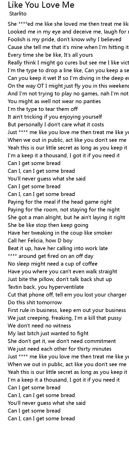 She ****ed me like she loved me then treat me like she don't need me |