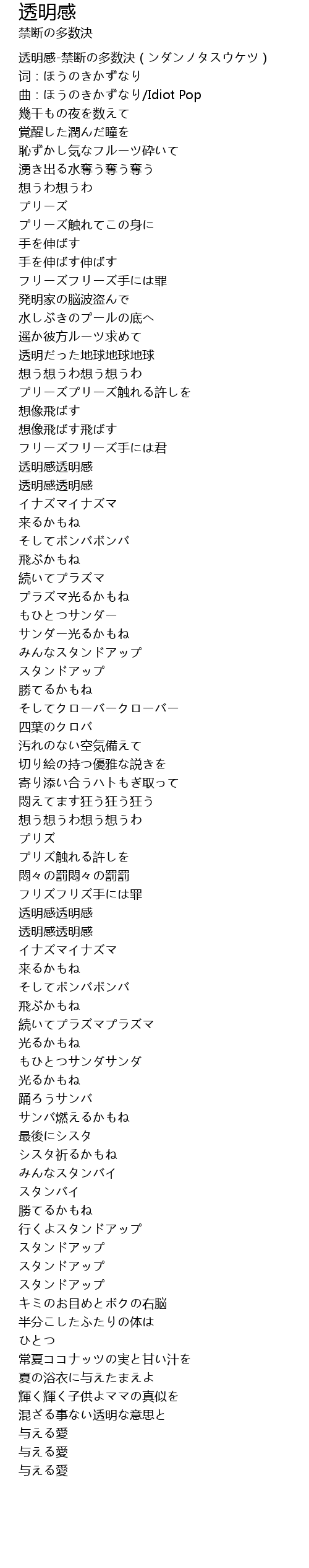 | [00:00.00] | 透明感-禁断の多数決(ンダンノタスウケツ) |