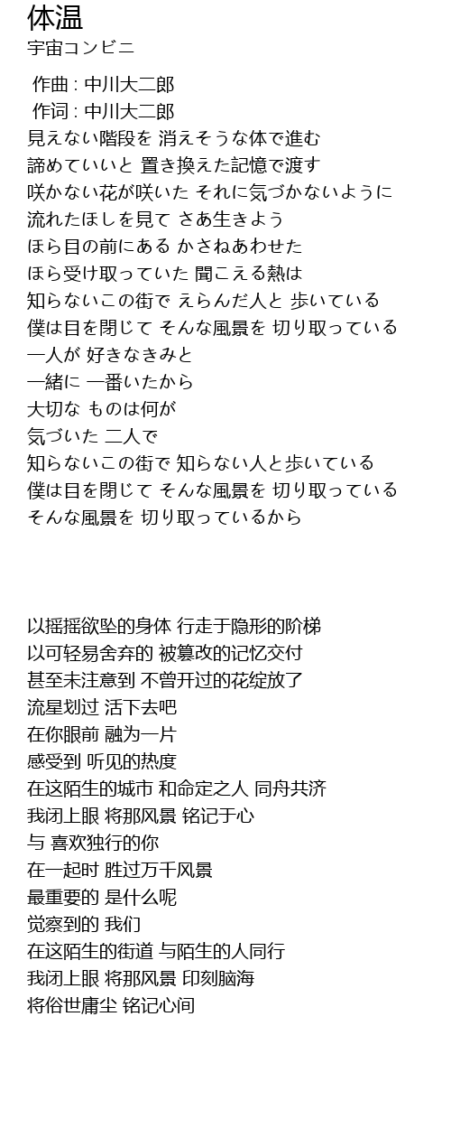 | [00:29.81] | 見えない階段を 消えそうな体で進む |