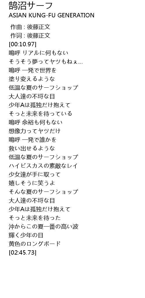 | [02:14.67] | 沖からこの夏一番の高い波 |