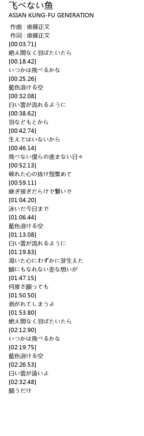 | [00:46.71] | 飛べない僕らの進まない日々 |