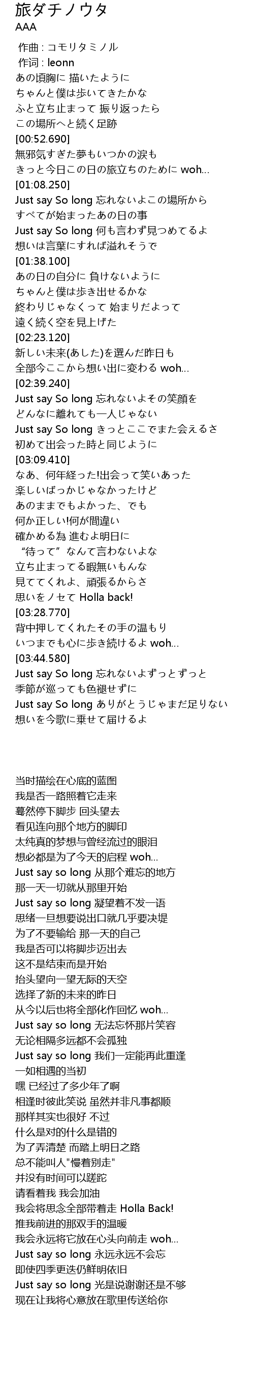 | [03:45.500] | Just say So long 忘れないよずっとずっと |