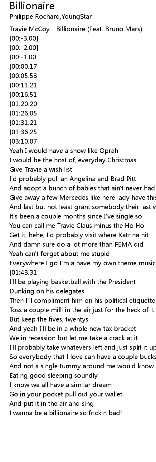 Travie McCoy - Billionaire (Feat. Bruno Mars) |