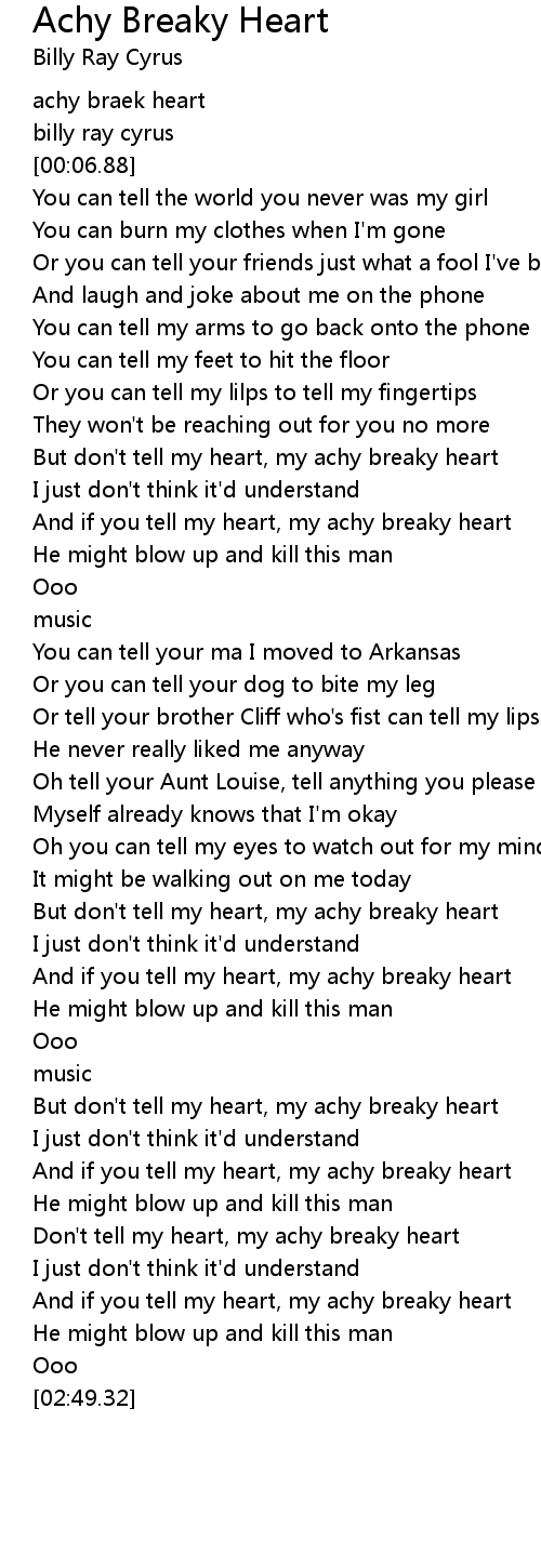 And if you tell my heart, my achy breaky heart |