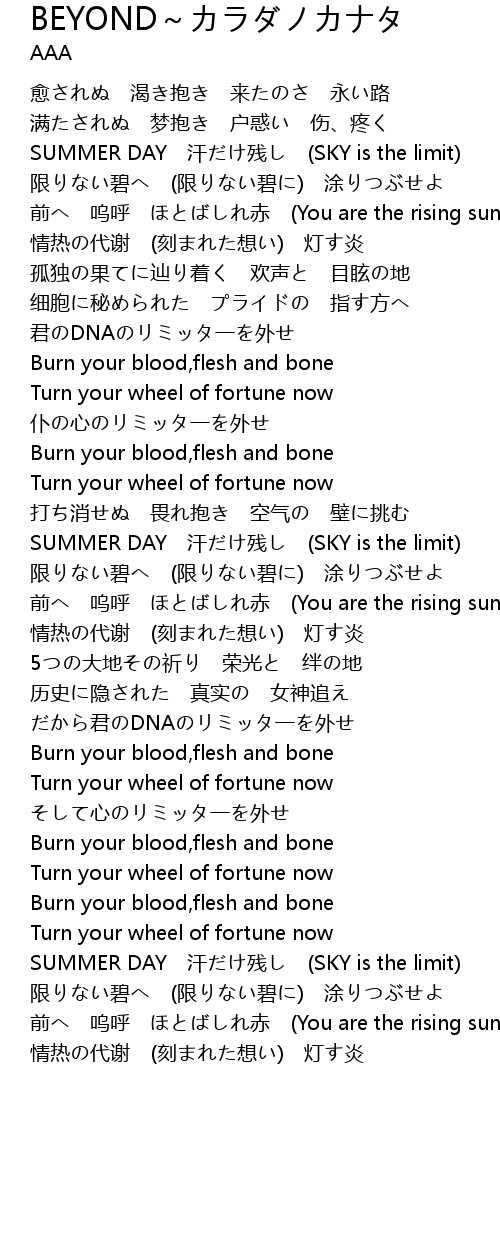 | Song | BEYOND~カラダノカナタ |