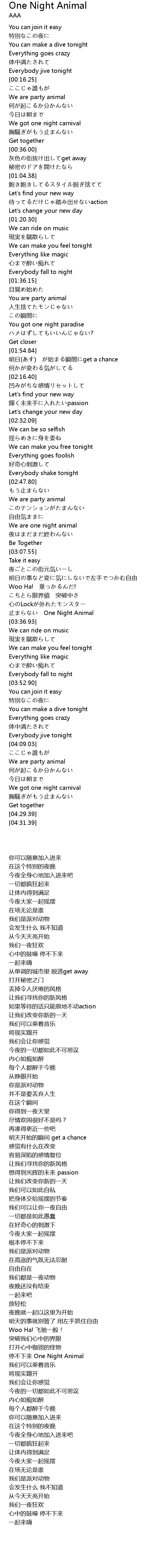 | [03:34.75] | zhǐ One Night Animal |