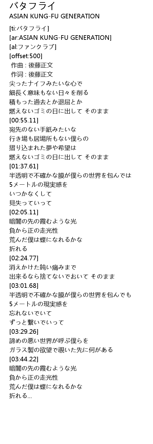 | [03:54.90] | 荒んだ僕は蝶になれるかな |