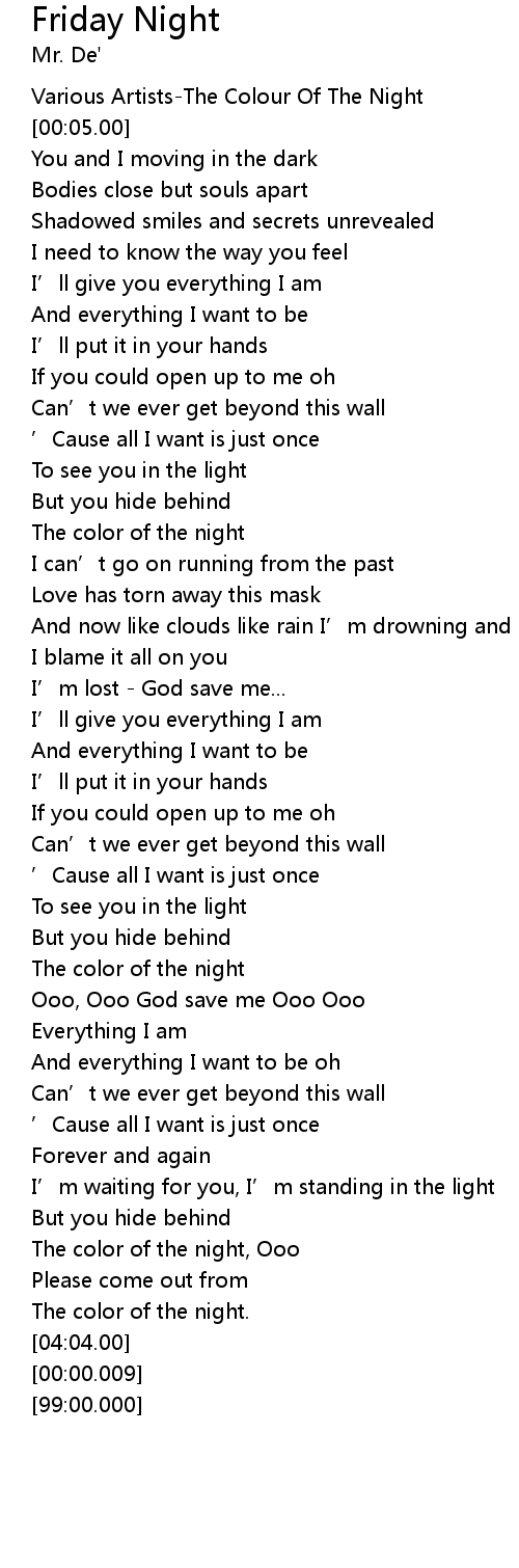 | [01:13.81] | The color of the night |