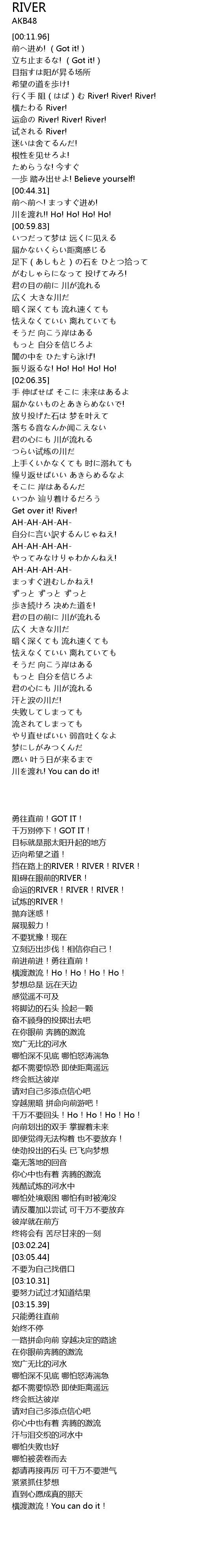 | [00:24.62] | 行く手 阻(はば)む River! River! River! |