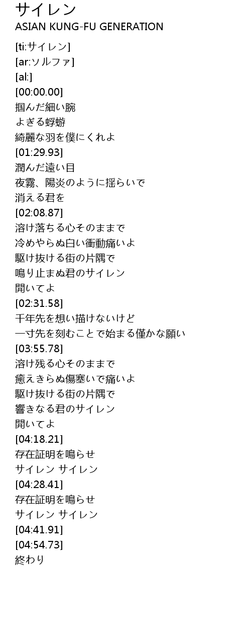 | [02:25.39] | 鳴り止まぬ君のサイレン |