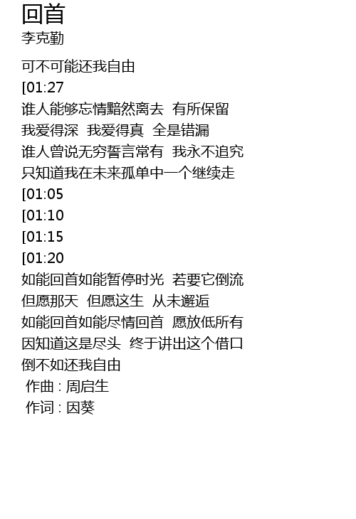 | [00:16] | kě bù kě néng hái wǒ zì yóu |