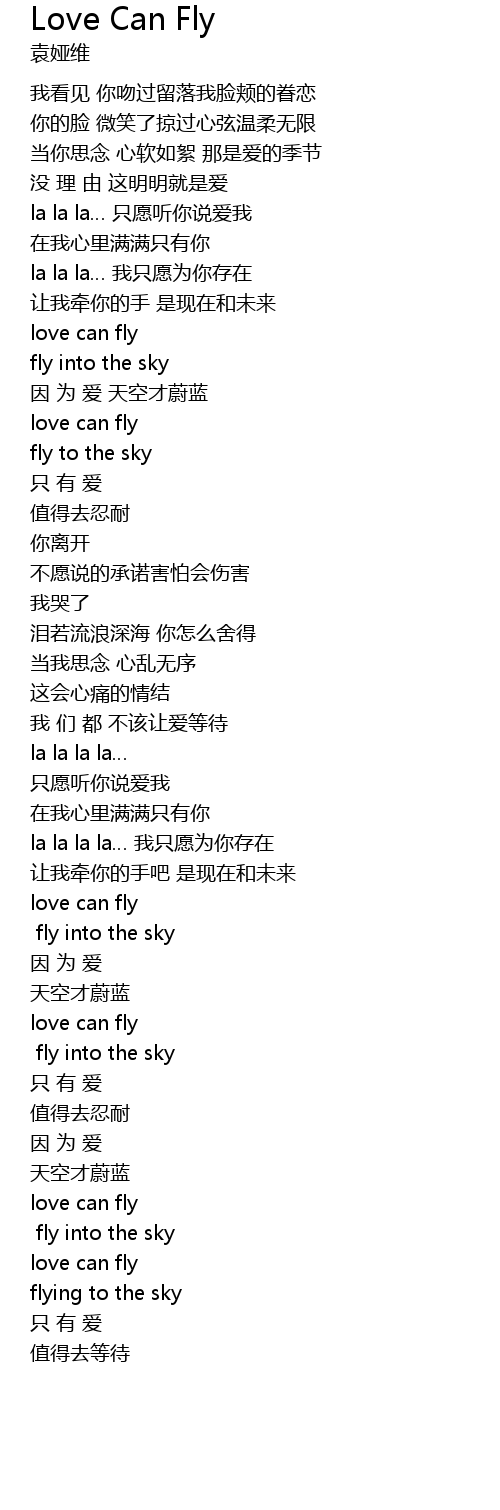 | [01:23.05] | la la la wǒ zhǐ yuàn wèi nǐ cún zài |