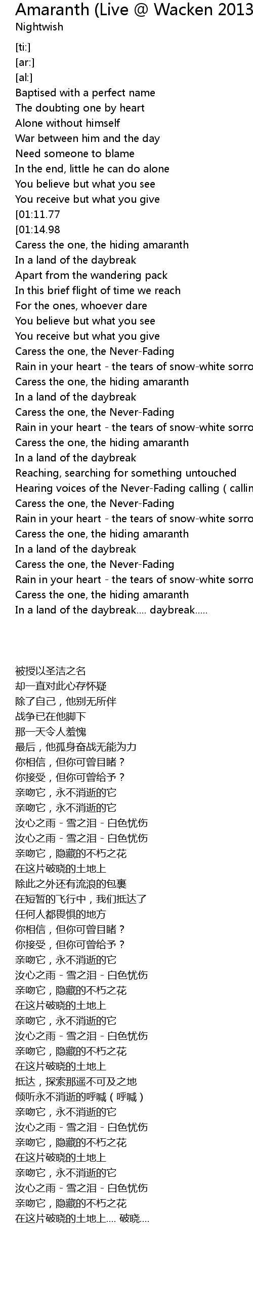 | [03:49.76] | Caress the one, the hiding amaranth |
