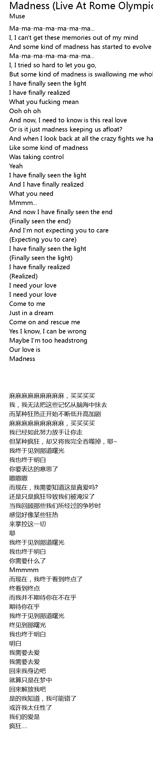 But some kind of madness is swallowing me whole, yeah |