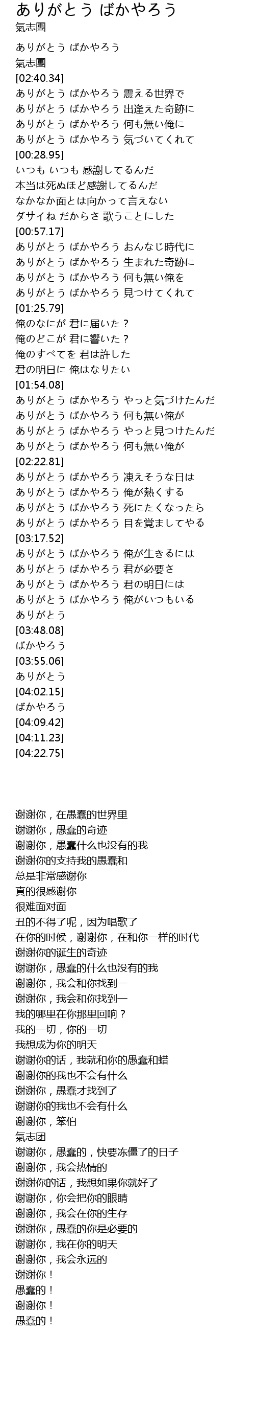 ありがとう ばかやろう 君が必要さ |