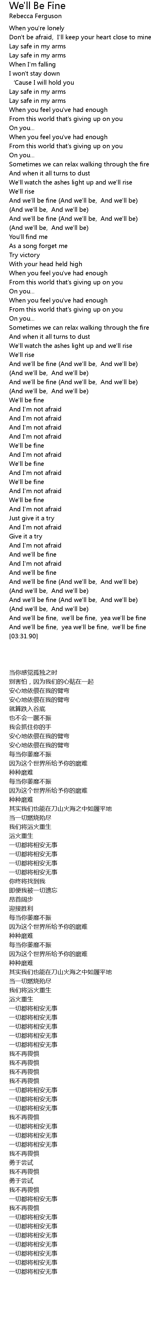 | [03:03.22] | And we' ll be fine And we' ll be, And we' ll be |