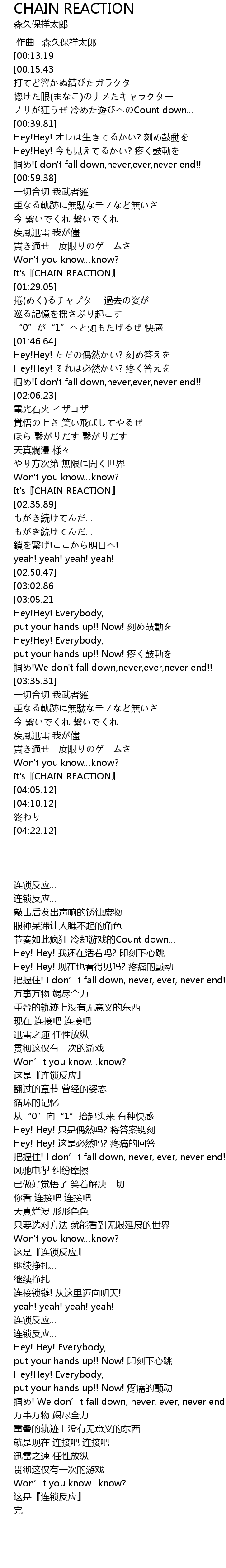 | [04:02.43] | It's『CHAIN REACTION』 |