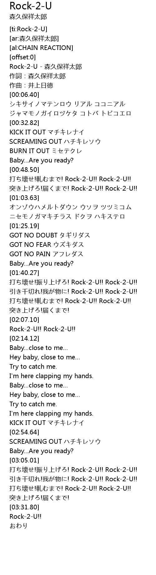 | [02:08.98] | Rock-2-U!! Rock-2-U!! |