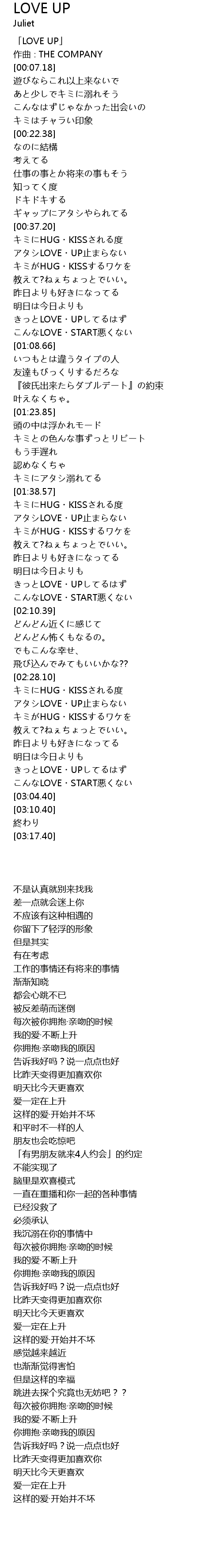 | [02:02.36] | きっとLOVE・UPしてるはず |