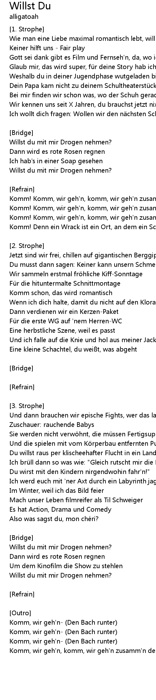| Komm, wir geh' n, komm, wir geh' n zusamm' n den Bach runter |