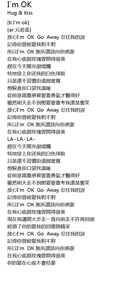 | [00:11.195] | 放心I'm OK Go Away 忍住我的淚 |