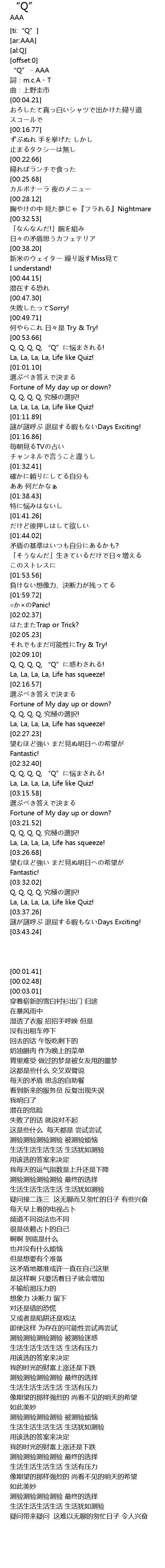 | [00:01.41] | “Q” - AAA |