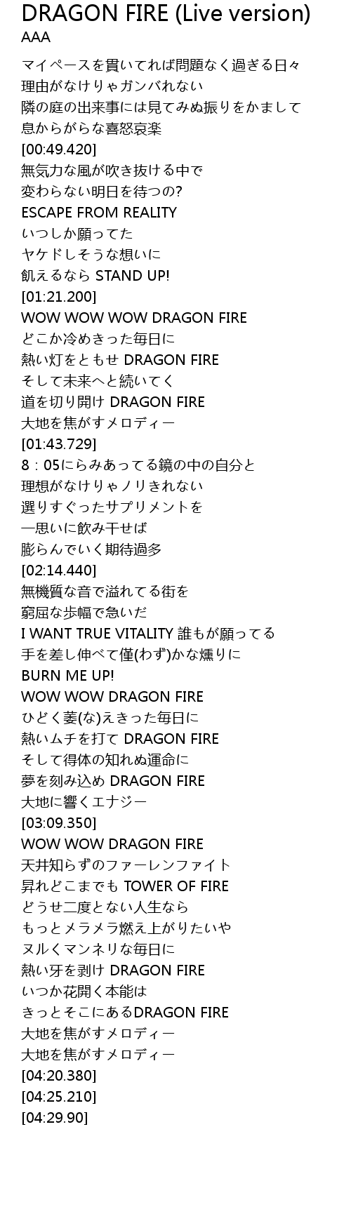 | [02:47.0] | WOW WOW DRAGON FIRE |