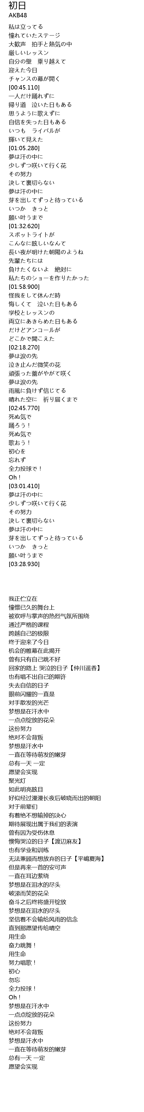 | [03:05.420] | 少しずつ咲いて行く花 |