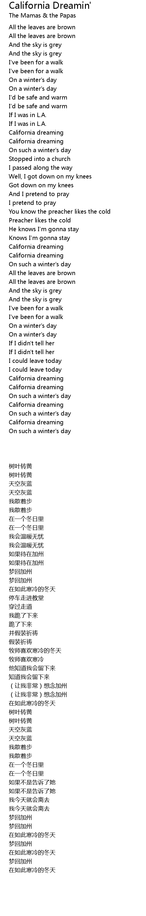 | Song | California Dreamin' |