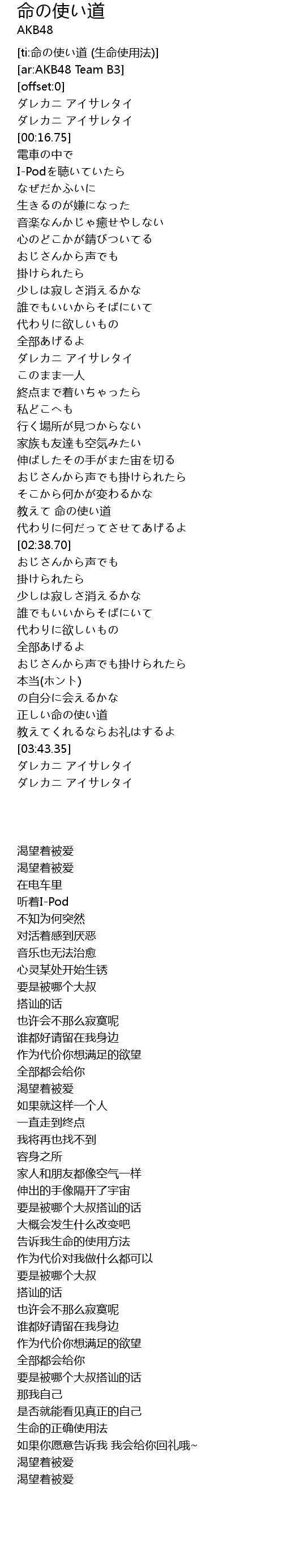 | [ti:命の使い道 (生命使用法)] | |